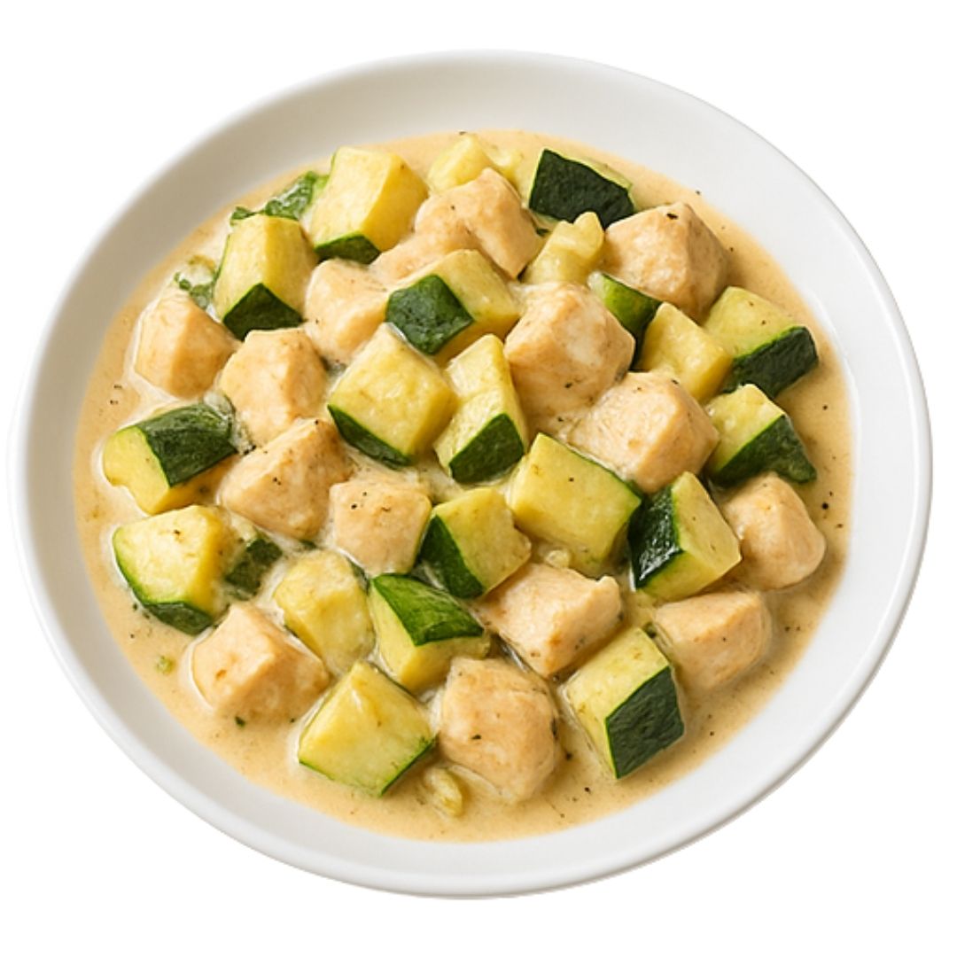 * Dodaj cukinię i śmietankę, dokładnie wymieszaj.