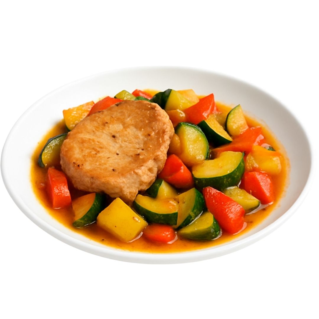 Schab duszony z warzywami